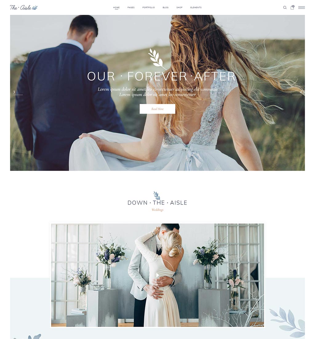 The Aisle comes with multiple predesigned homepages dedicated solely to creating invitations for your special day. Customize each page as per your style, add a timeline, the RSVP form, share your love story, and include the countdown to the big event.